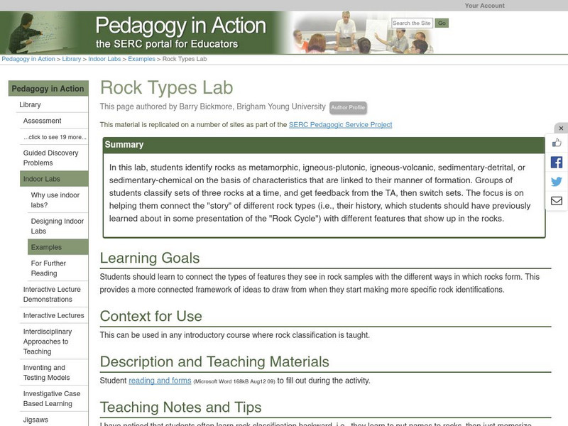 A well-designed lesson on rocks where students first learn about how the three categories of rocks form (sedimentary, igneous, and metamorphic), then must examine the features of different rock samples, and determine which category each...