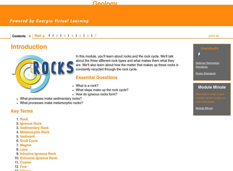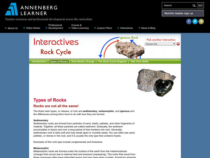 This tutorial explains the rock cycle--from beginning to end! It is full of activities, assessments, games, slideshows and all kinds of interactive material. Learn what rocks are made of and how they change from one form to another....