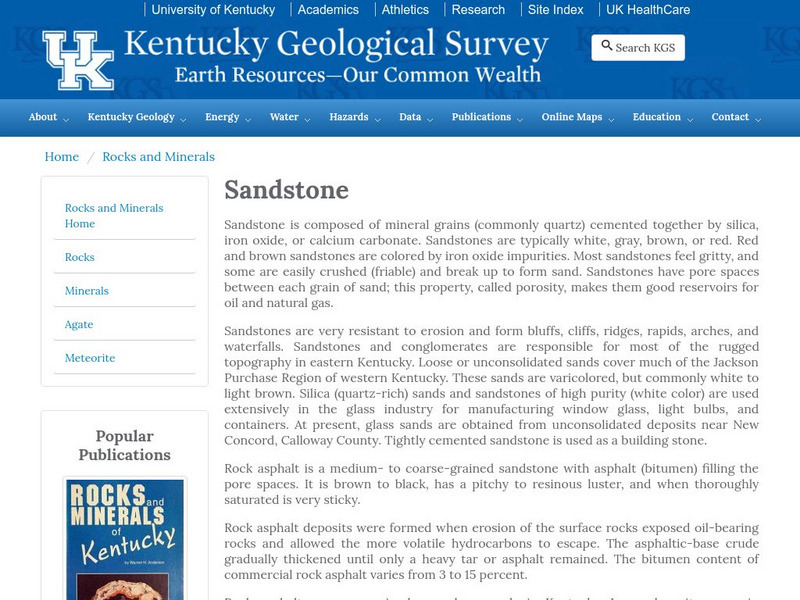 University of Kentucky: Rocks and Minerals: Sedimentary Rocks: Sandstone