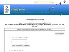 In this zero conditional sentences worksheet, students are given words to make a zero conditional sentence and type it in, with hints and answers available.
