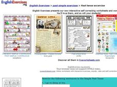 In this online interactive verbs worksheet, students rewrite 25 sentences online changing their present tense verbs to past tense verbs. Students type each sentence in the white boxes provided.