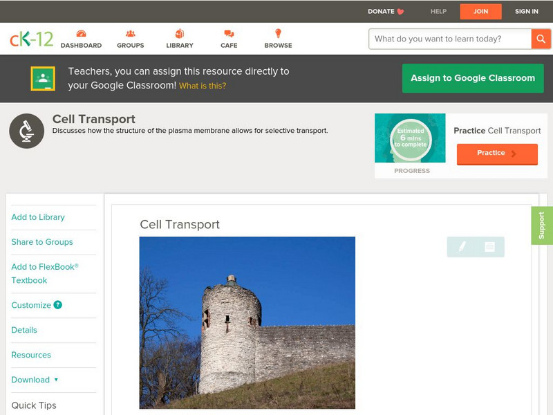 Resource provides an explanation of Cell Transport. Includes many practical examples, as well as pictures. Sections include Water and Solute Movement, The Cell Membrane. Cells and Diffusion, Active and Passive Transport, Carrier-assisted...