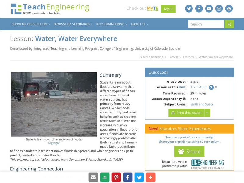 Students learn about floods, discovering that different types of floods occur from different water sources, but primarily from heavy rainfall. While floods occur naturally and have benefits such as creating fertile farmland, students...