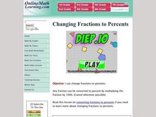 In this online math instructional activity, students practice changing fractions into percents. This excellent resource allows the students to check their answers, and to get "hints" should they run into difficulties. A terrific teaching...
