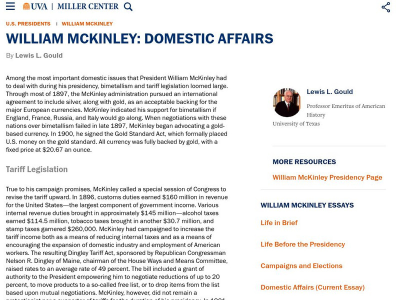 Miller Center at Uva: u.s. Presidents: William Mc Kinley: Domestic Affairs