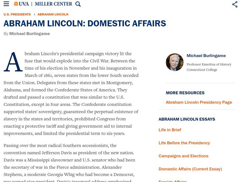 Miller Center at Uva: u.s. Presidents: Abraham Lincoln: Domestic Affairs