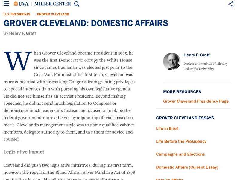 Miller Center at Uva: u.s. Presidents: Grover Cleveland: Domestic Affairs
