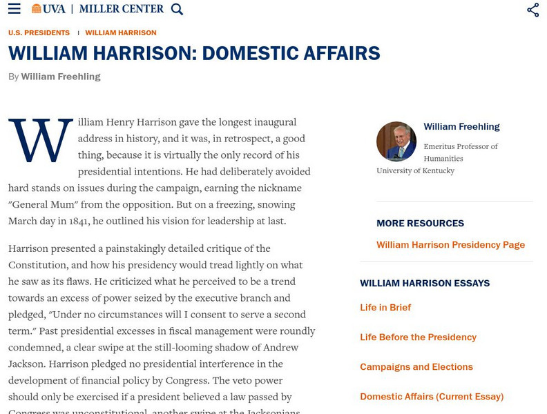 Miller Center at Uva: u.s. Presidents: William Henry Harrison: Domestic Affairs