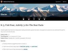 Students explore various kinds of bears and gather information about them. In this research and habitats lesson, students chart their bear information on large posters with illustrations of their bears. Students map the...