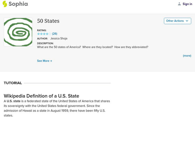 Four different quizzes to test students' knowledge about the states. These include State Facts, State Capitals, State Trees, and State Nicknames.