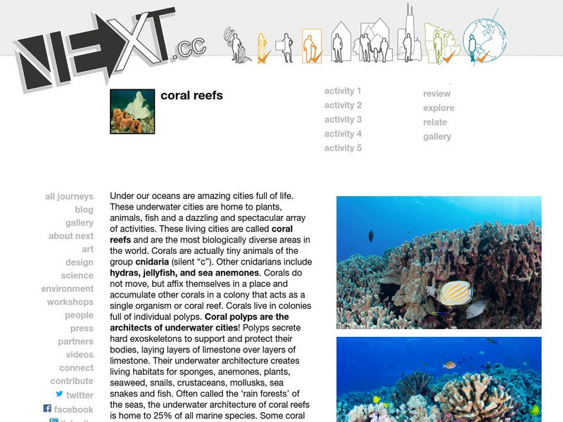 Learn about the plants, animals and sea life that inhabit coral reefs by completing the five activities. Explore reefs further by clicking on one of the numerous links provided.