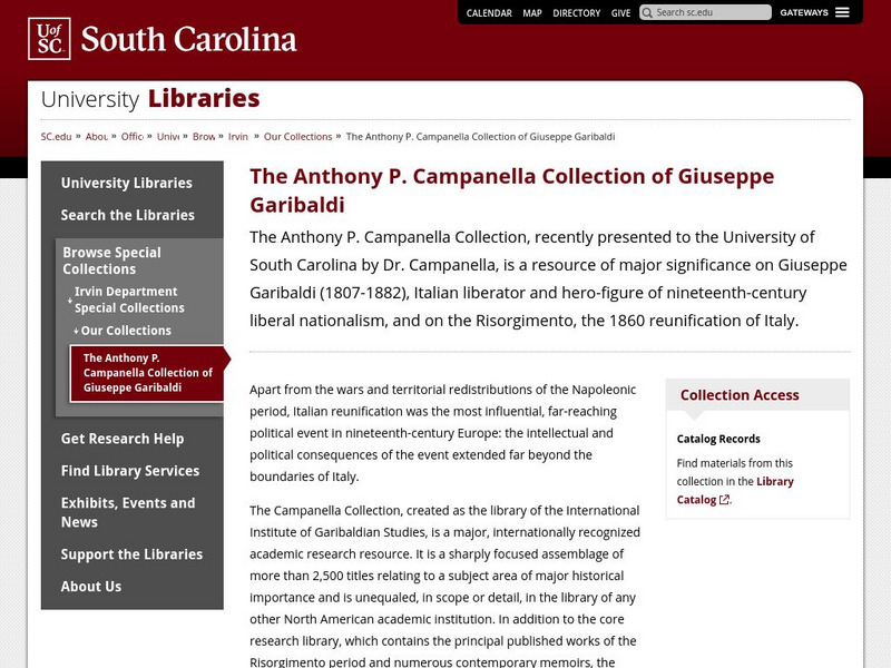 An online exhibit on Giuseppe Garibaldi, Italian liberator and hero-figure of nineteenth-century liberal nationalism, and on the Risorgimento, the 1860 reunification of Italy.