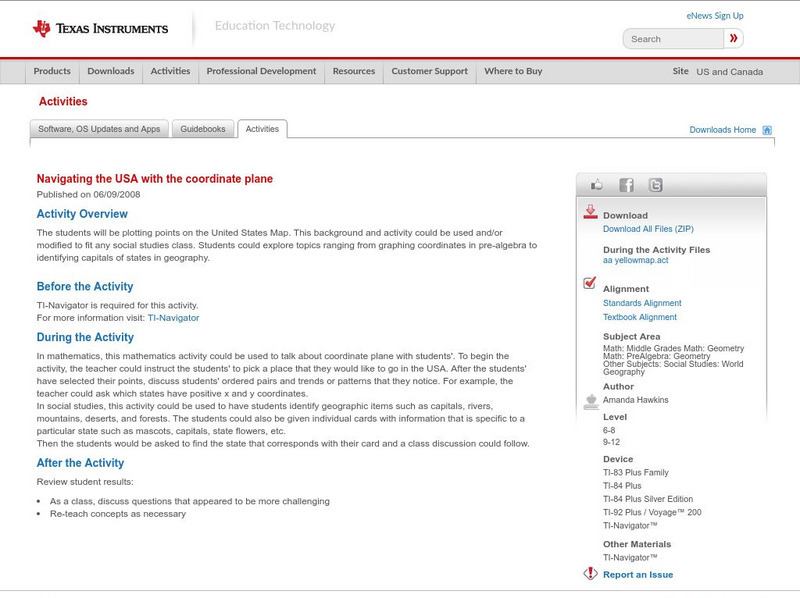 Texas Instruments: Navigating the Usa With the Coordinate Plane