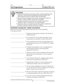 In this Progressive Era worksheet, students review a chapter as they read 10 descriptions identifying who or what is speaking, respond to 4 short answer questions, and explain a historical theme regarding this time period in United...