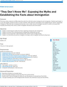 Middle schoolers engage in a lesson that teaches them to distinguish myths from facts about United States immigration. Class members take an immigration quiz, watch a "What Would You do" video, and discuss how they could be an ally to...