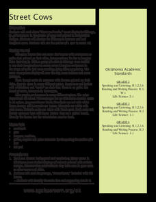 A light, and humorous lesson on "street cows" is here for you. Learners listen to the story, "Street Cows," which is embedded in the plan. On a map of the US and the World, they locate the cities where the "Cows on Parade" exhibit was...