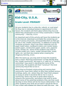 What a model community would look like? Get your kids talking with an activity that allows them to create their own town. After printing out a "fold out village," groups of learners use a variety of resources to help them build an actual...