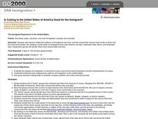Student discuss whether coming to the United States was good for certain groups of immigrants. Using the internet, they examine settlement patterns for immigrants over a period of time. In groups, they role play the role of a family...
