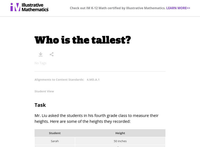 Illustrative Mathematics: 4.md Who Is the Tallest?