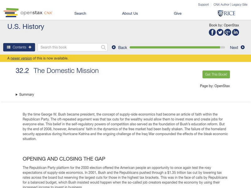 Open Stax: Challenges of the Twenty First Century: The Domestic Mission
