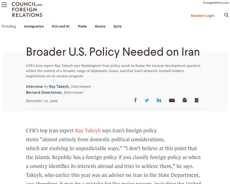 Council on Foreign Relations: Broader u.s. Policy Needed on Iran