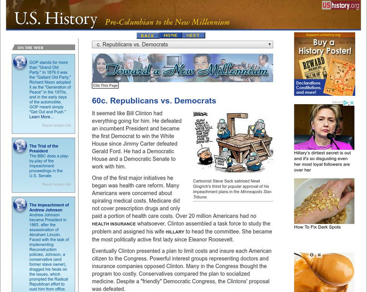 A review of Bill Clinton's domestic policies and scandals in his two terms of office. Focus is on the rancor of the Republicans against Clinton.