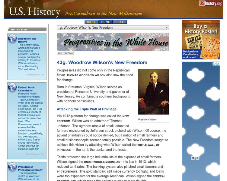 A good overview of the domestic policies of William Howard Taft, the Republican president elected in 1908, and the reforms of Woodrow Wilson, Democratic candidate, who was elected in 1912.