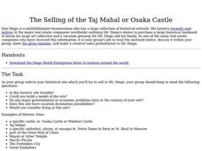 Students practice their marketing skills. In this historical sites lesson plan, students select and research historical sites in the world that they market and attempt to sell to a businessman.