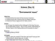 Students investigate the natural resources on earth by reading a book in class. In this environmental lesson, students read select pages from the book Alaska by Rebecca Stefoff and discuss their feelings on the material. ...