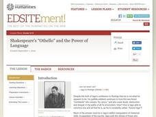 Learners explore the basis of Iago's persuasive power by analyzing Shakespeare's use of rhetoric and figurative language. In this Othello lesson, students analyze Iago's rhetoric in monologues and dialogues with other characters....