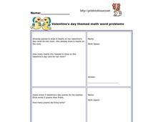 In this Valentine's Day subtraction and addition worksheet, 2nd graders work out and solve 2 word problems involving subtraction and addition.