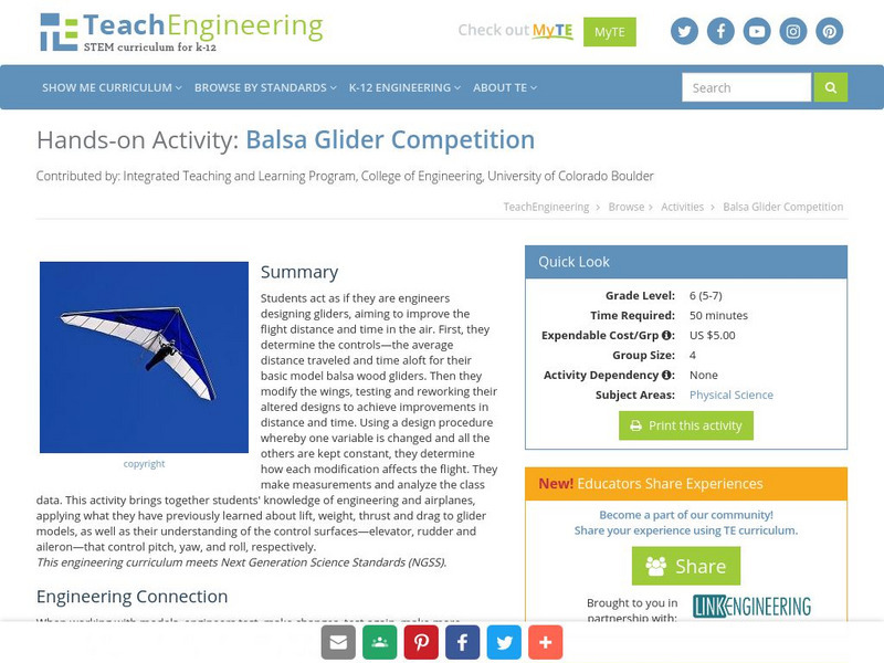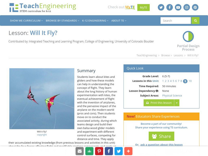 The purpose of this activity is to bring together the students' knowledge of engineering and airplanes and the creation of a glider model to determine how each modification affects the flight. The students will use a design procedure...