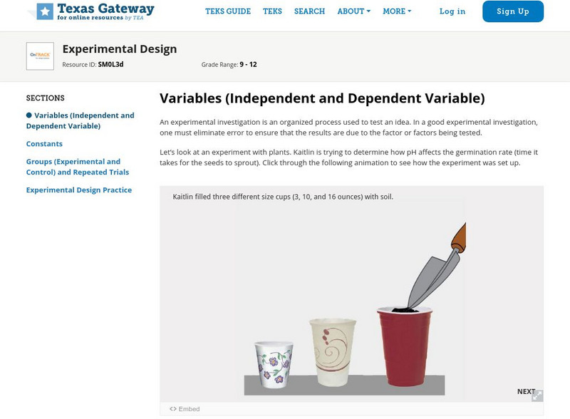 [Free Registration/Login may be required to access all resource tools.] Experiments, experimental variables, and experimental controls are discussed.