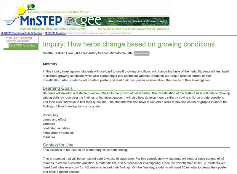 Serc: Inquiry: How Herbs Change Based on Growing Conditions