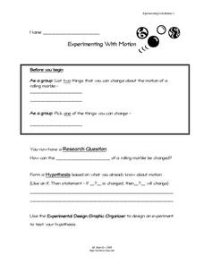 Students design an experiment to change the motion of a rolling marble. In this designing an experiment lesson plan, students form a research question, they develop a hypothesis and they design an experiment using a graphic organizer to...