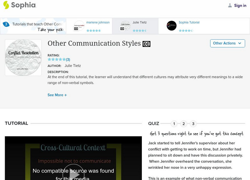At the end of this tutorial, the learner will understand that different cultures may attribute very different meanings to a wide range of non-verbal symbols. It is 2 of 3 in the series titled "Other Communication Styles."