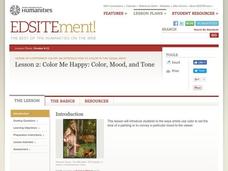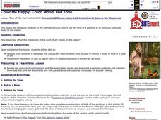 Students examine how artists use color to set the tone of a painting. They analyze and discuss various paintings, complete a chart comparing the artists' color schemes and tones, and write a paragraph comparing two images.