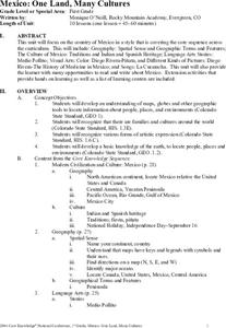 Students research and study the country of Mexico and complete a project about it. In this Mexico lesson plan, students research Mexico's geography, traditions, art, songs, stories, and legends that are native to Mexico.