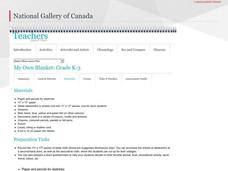 Invite your young artists to design blankets that express their own identities. Learners examine various pieces of art before brainstorming a few things that represent their identities. They use these ideas, in addition to symmetry and...