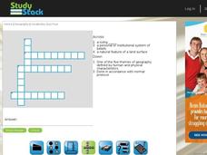 In this online interactive geography crossword puzzle worksheet, students use the 5 clues to find the appropriate answers to complete the word puzzle.