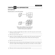 In this cell reproduction worksheet, students will discover that when a cube doubles in size, the surface area grows by four times and the volume grows by eight times. Students will use this information to understand the limits to cell...