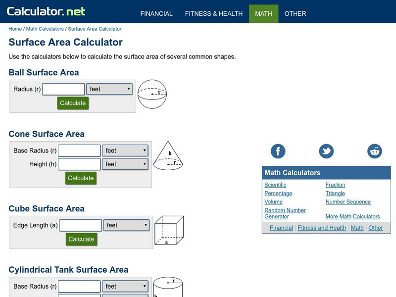 Calculator.net: Surface Area Calculator