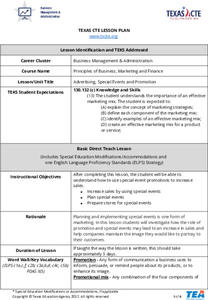 What a bargain! Scholars learn how to increase business profits with special events and promotions. Using what they learned, pupils create a special event for their school and give an oral presentation to explain their promotional...