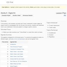 Here's a creative resource that definitely isn't paint by numbers. As the fourth in and eight-part Art series, learners create a paint program using the Scratch block code. By completing the activity, class members come to understand the...