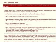 In this secondary mathematics worksheet, high schoolers investigate a riddle involving the use of the dictionary and subtraction of three digit numbers. The one page worksheet contains one problems with an explanation of why the...