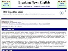 In this Mexican border instructional activity, students read the article, answer true and false questions, complete synonym matching, complete phrase matching, complete a gap fill, answer short answer questions, answer discussion...