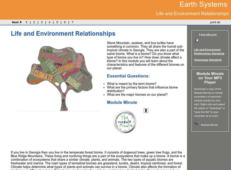 Ga Virtual Learning: Life and Environment Relationships