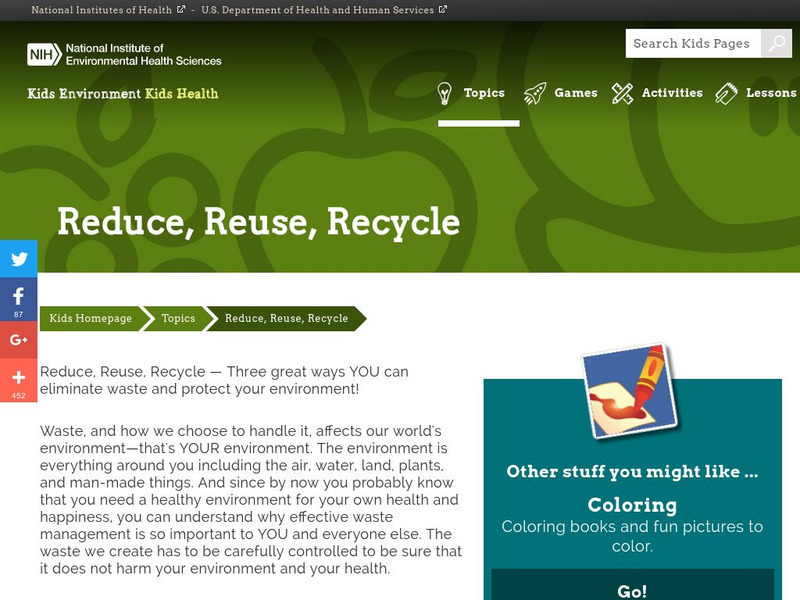 Reduce, Reuse, Recycle - Three great ways YOU can eliminate waste and protect your environment!Waste, and how we choose to handle it, affects our world's environment-that's YOUR environment. The environment is everything around you...