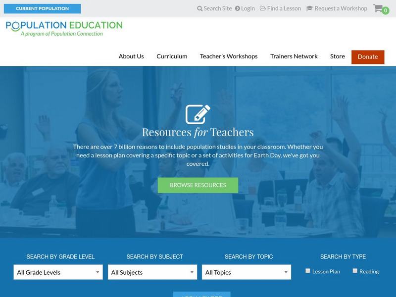 Population Education provides teacher training and a variety of teacher tools to help educators on population concepts such as population growth, overpopulation, our effect on the environment, and related resources.