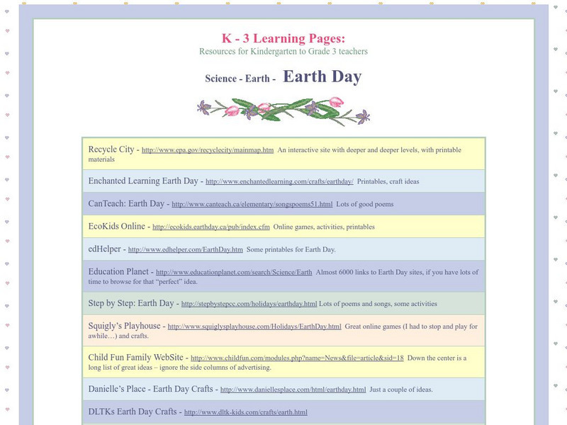 K 3 Learning pages.com: Earth Day Links